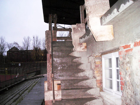 Es hängen an den Eingängen übrigens Evakuierungsschilder aus, auf denen für Tribüne, Gegentribüne und Ostkurve aktuelle Angaben über die max. Zuschauer nach Baufertigstellung gemacht werden.Also ich war da im Januar 2007 !! arbeiten . Wenn ich Deine Fotos so anschaue , hat sich seit dem rein garnix getan.