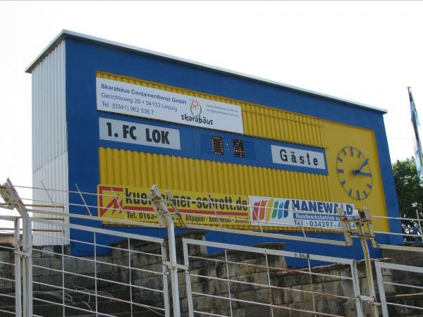Parkplatz in der Nähe des Gästeeinganges war auch schnell gefunden. Karten gab’s im „fliegenden Verkauf“ der Security. Angekommen im Gästeblock musste man die Uhren erst einmal 25 Jahre zurückdrehen. Kaum ein Oberligist spielt in so einer Bruchbude. Regionalligatauglichkeit darf hier stark angezweifelt werden. Anfangs war der Andrang beim Catering noch akzeptabel, doch dann entwickelten sich Wartezeiten von bis zu 25 Minuten und das bei ca. 400 Gästeanhängern! Die Stimmung im ZFC Block war von Anfang an gut und von viel Optimismus geprägt. Ich erwartete einen bis in die Haarspitzen motivierten FCL der von Anfang an einen Sturmlauf entfacht. Aber weit gefehlt. Nach erstem Abtasten schlug Ossi Oswald einen Sahnepass auf Gasch der hier das 0:1 machen muss, aber Evers hält glänzend. Den Nachschuss von Weinert fälscht Köllner ins eigene Netz ab. Das war ein Paukenschlag. Dann verletzte sich Ledwoch nach einem Zusammenprall im Mittelfeld schwer. Davon unbeeindruckt macht Lok nun mehr Dampf und Schreiber hat die Riesenchance zum Ausgleich, scheitert aber am Meuselwitzer Torwächter Dix. Nach einer halben Stunde übernimmt Meuselwitz wieder das Zepter und erspielte sich bis zur Halbzeit eine Reihe guter Möglichkeiten. Dann war Halbzeit und die Zuversicht hier die vollen 3 Punkte mitzunehmen wuchs. Das Bemühen der Leipziger nach der Halbzeit eine Schippe draufzulegen war zu erkennen, jedoch fehlten die Mittel. Einzig ein gefährlicher Distanzschuss von Reich bedrohte das Gästegehäuse, ging aber knapp vorbei. Lok brachte jetzt Heusel ins Spiel und um ein Haar wäre es für ihn auch nach zehn Sekunden wieder vorbeigewesen, als er mit Anlauf und gestreckten Beinen in den Gegenspieler rauscht, Kotowski sich aber durch einen gekonnten Haken dieser versuchten Körperverletzung entziehen konnte. Danach verletzte sich Loks Spielführer und Abwehrchef Kraus und musste ausgetauscht werden. Das gab der schwachen Lok-Defensive den Rest. Kotowski setzte sich auf der rechten Seite stark durch und seine Maßflanke köpfte Sebastian Gasch zum umjubelten 0:2 in die Maschen. Noch eine Viertelstunde war zu spielen und der Dreier in greifbarer Nähe. Wieder setzte sich Gasch hervorragenden im Strafraum der Gastgeber in Szene, bediente Frank Müller der platziert einnetzte. Der Jubel im Gästeblock kannte nun keine Grenzen mehr. Die ersten Lokisten hatten genug gesehen und machten sich auf den Heimweg. Der ZFC hatte noch nicht genug. Wieder ging über rechts die Post ab, Weinert bediente Sturmtank Bocek mustergültig und diese hatte keine Mühe den vierten Treffer zu erzielen. Der Rest war dann Schaulaufen mit der Möglichkeit das Trefferkonto noch aufzustocken. Der umsichtig leitende Schiedsrichter pfiff pünktlich ab. Es war vollbracht, die belächelten Zipsendorfer haben den Großstädtern eine richtig schmerzliche Niederlage beigebracht. Ich wollte noch ein Bild vom denkwürdigen Ergebnis an der Anzeigetafel machen, aber die wurde mit dem Schlusspfiff sofort abgeschalten. Dann war noch etwas Feiern mit der Siegermannschaft angesagt, bevor man 17 Minuten nach Spielende den Gästeblock verlassen durfte. Aus Sicherheitsgründen wie es hieß. Dann ging es mit Polizeieskorte Richtung Busse und Fahrzeuge und auf eine gelöste Heimfahrt in die heimischen Dörfer. Nun bleibt zu hoffen, dass mit der nötigen Konzentration der Platz an der Sonne verteidigt werden kann. Schade eigentlich, dass man im Falle des Aufstieges nicht wieder gegen den Punktelieferanten aus Leipzig spielen kann.