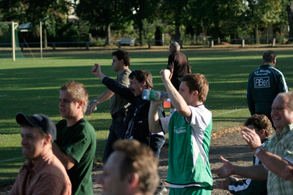 Den Tabellenführer in denkwürdigem Spiel bezwungen Der Partie war von Beginn an die Wichtigkeit für beide Teams anzumerken. Mit viel Herz und Energie schenkten sich beide Teams nichts. Hertha spielte gut mit und setzte die ersten Angriffe, die jedoch noch nicht zwingend genug abgeschlossen wurden. Die beste Gelegenheit hatte Toni John nach einem langen Solo, kam jedoch nicht mehr zum Abschluss. Als nach einer guten halben Stunde Hertha dem ersten Treffer sehr nah war, bekam man die Kaltschnäuzigkeit der Cottbuser zu spüren. Tom Mißbach zog aus 25 Metern ab und überwand die nicht gut gestellte Mauer zum 0:1. Der Schock nach der bis dahin guten Leistung war kaum verwunden, da setzte es das nächste Tor. Nach Pass auf den stark abseitsverdächtigen Marcel Kubatz ließ der sich die Chance nicht nehmen und verbuchte das 0:2. Noch bis zur Pause war Victoria am Drücker und hatte gute Chancen, die Christian Weidling jedoch parieren konnte. Die Halbzeitansprache der Trainer schien gefruchtet zu haben, denn Hertha machte von Beginn an starken Druck und griff schnell an. Einen cleveren Spielzug durch die Mitte schloss Tony Lehmann abgebrüht und straff zum Anschlusstreffer ab. Jetzt war die Partie wieder offen und Hertha versuchte die Cottbuser einzuschnüren und kam so zu einigen Gelegenheiten, die jedoch nicht immer konsequent zu Ende gespielt wurden. Der FSV machte bei Unterbrechungen das Spiel langsam und befreite sich dann immer wieder mit schnellen Kontern und forderte Christian Weidling, der seinen Fehler längst wieder gut gemacht hatte, mehrmals zu Glanztaten. Mit der Schlussphase der Partie wurde das Spiel auch hektischer und Hertha suchte verzweifelt die Chance. Als Toni John knapp im Strafraum gefoult wurde, zeigte Schiedsrichter Tumlirsch sofort auf den Punkt. Dem großen Druck trotzte Lars Thimm und glich das Spiel verdient aus. Jeder wäre mit einem 2:2 wohl zufrieden gewesen, doch das Team hatte noch nicht genug. Erst jedoch versagten Rene Hogan und Toni John allein vor dem Keeper die Nerven, dann war es eine Standardsituation, bei der Nico Franzeck plötzlich völlig frei war und aus einem Meter die klar beste Saisonleistung seines Teams mit dem 3:2 vergoldete.