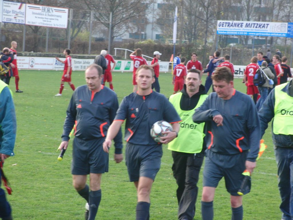 • 21.11.2009 3 Punkte gegen den direkten KonkurentenDie Nerven der Zuschauer wurden bis zum Abpfiff stark beansprucht, aber am Ende stand ein 3:1 gegen den FSV Luckenwalde, der heute Chancen für mindestens zwei Spiele hatte. Unsere Abwehr konnte aber den Sieg festhalten. Zwei Treffer von Uchereck und ein Treffer von Stefan Voß haben dann genügt, um zu gewinnen. Der Gast dezimierte sich am Ende selbst, da der Schieri einmal gelb/rot und einmal rot für zwei Gästespieler zeigte.