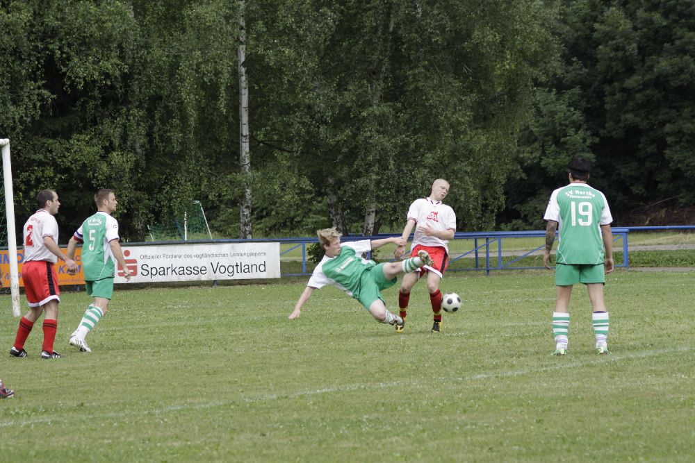 Zum Anfang war der SV Hertha ein hochgeschätztes Team für den 1. FC Rodewisch. Der Gastgeber freute sich schon riesig auf das Spiel. Dieses wurde kurz nach Anpfiff für den SV Hertha schon gefährlich. Gleich zweimal Pfosten und in der 8. Minute die Führung durch Harand ließ die nach den vielen Lauftraining müden Herthanern nicht aus der Ruhe bringen. In der 10. Minute schaffte Benjamin Stern den Ausgleich zum 1:1. Danach war es sehr ruhig. Viele Torversuche beider Mannschaften, aber nix gelang. In der 44. Minute bekam der Keeper vom SV Hertha eine gelbe Karte wegen Handspiels außerhalb der 16m-Linie. Den daraus resultierenden Freistoß verwandelte Stolpmann zum 2:1. Halbzeit.