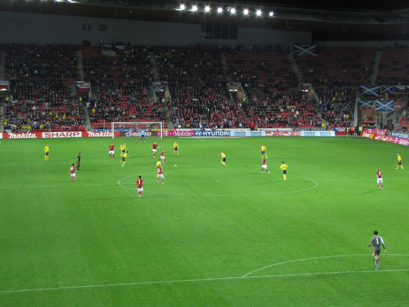 Vor einigen Monaten - als die Auslosung und Ansetzungen der EM-Qualigruppen feststand - wurde ich gefragt, ob ich nicht Lust hätte mit zum Spiel der Schotten in Prag zu fahren. Prag? Bier? Fußball? Die Rahmenbedingungen stimmten und ließen mich sofort zustimmen. Lediglich die Ticketsuche gestaltete sich schwierig. Bestellung via Internet musste 30 Tage vorher aus dem Ausland gemacht werden - zu der Zeit wurden aber online noch keine Tickets angeboten. Die Hotelrezeption zeigte sich gänzlich unmotiviert den eigenen Gästen Karten zu besorgen und das die Partie nicht ausverkauft werden würde, wusste bis dahin niemand. Erst drei Tage vorher meldete sich ein guter Bekannter aus England, der noch Karten übrig hatte. Wir sagten sofort zu und machten uns Donnerstagmittag auf die Reise. Bei Teplice begann die Staumisere und so landete man erst gegen abends halb 7 in der Tschechenmetropole.