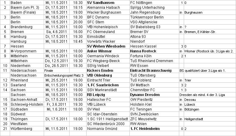 Aktualisierung und Korrekturen (RB und auch in Brandenburg muss Hohenleipisch noch ins Halbfinale gg. Schwedt am Mittwoch) erfolgen am Donnerstag.