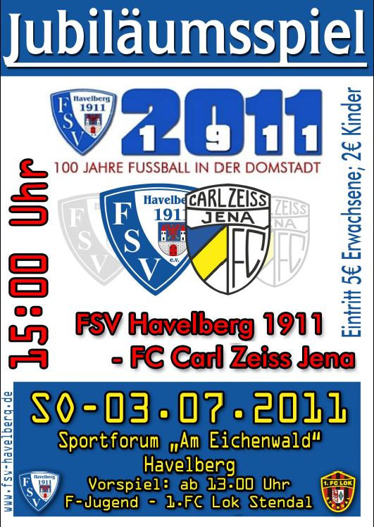 Anlässlich zum 100. Geburtstag bestreitet der FSV Havelberg ein Freundschaftsspiel gegen den FC Carl Zeiss Jena.