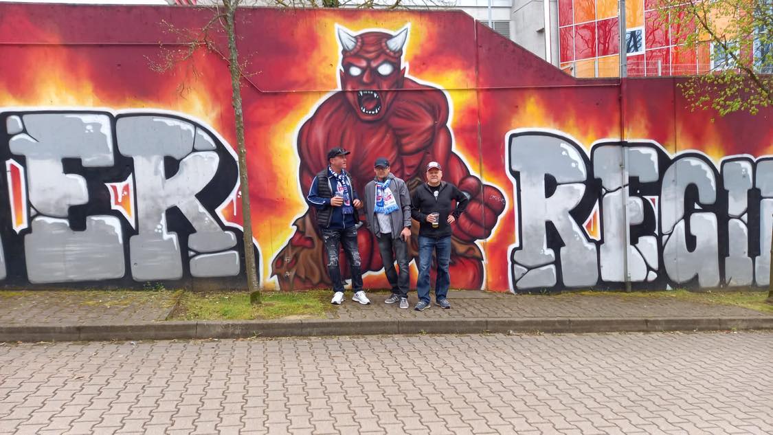 Mein erstes Auswärtsspiel seit gefühlt 15 Jahren. Ich glaube 2007 bei 1860 (2-1 Hansa) war das letzte und dann sucht man sich auch noch die Fahrt nach K'lauter (750 km) bei der derzeitigen Situation aus. Egal, zugesagt ist zugesagt und da man keine 20 mehr ist, ging es natürlich nur mit Hotelübernachtung. Also Freitag früh Start und bis ca. 100 km vor dem Ziel lief es auch ganz gut. Dann der normale Freitagsberufsverkehr aber pünktlich zum Abendbrot erreichte man das Hotel. Einchecken, frisch machen und zack - da steht der Hansa Bus vor dem gleichen Hotel und alle laufen sie einem über den Weg. Ein freudiges "Hallo" insbesondere mit Busfahrer Riete, der aus dem gleichen Ort wie unsere Reisegruppe kommt und mit dem wir abends dann noch über so einige Jugenderinnerungen schwadronierten - schöner Abend.