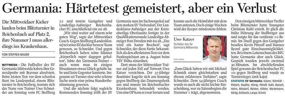 Gestern mal beim Test von Aufsteiger Strehla gg. Kreinitz gewesen. Das Spiel endete mit 6:1 für den Kreisoberligisten und da gibt's noch sehr viel zu tun für Strehla, sonst endet das mit Ergebnissen wie Lommatzsch letzte Saison.