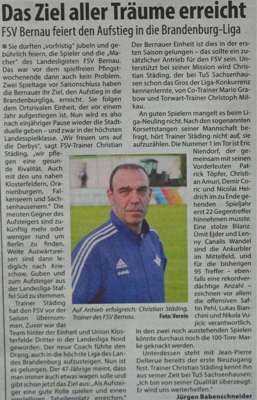 Der FSV Bernau feiert den Aufstieg in die Brandenburg-Liga!