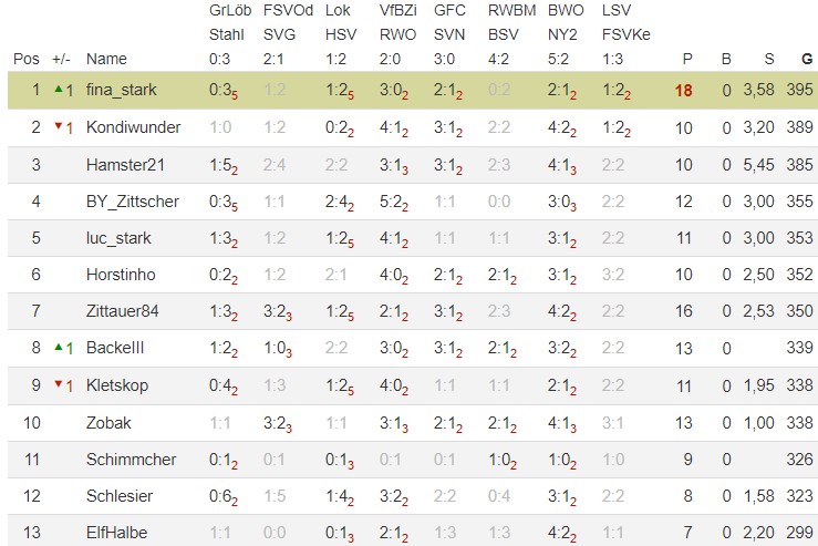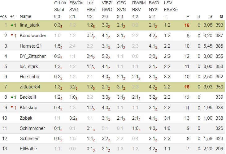 Abgegebene Tipps für das Spiel zwischen Holtendorf und Rauschwalde können nochmal geändert werden. Bisher notierte Tipps für das Spiel (siehe folgendes Bild).