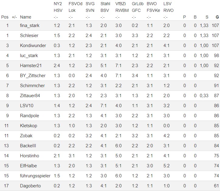 | 22.09.18 15:00 | Görlitzer FC Rauschwalde | VfB Zittau | 1 : 3 |