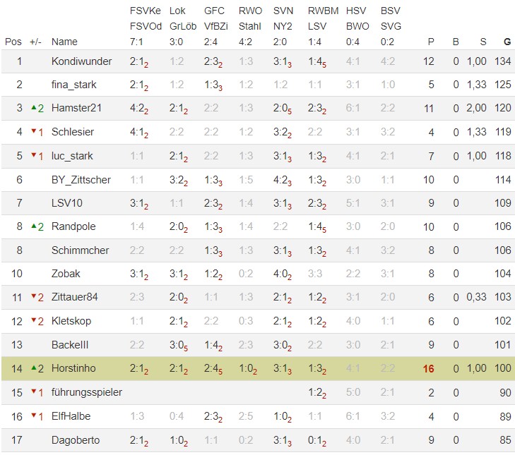 Da das Heimrecht getauscht wurde, hier nochmal die korrekte Darstellung vom 10.Tippspieltag: