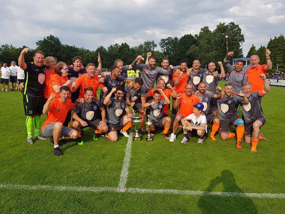 Das sind die Sieger: Die Ü32-Fußballer der Spandauer Kickers haben den deutschen Altherren-Supercup auf dem Gelände des VfL Weiße Elf Nordhorn gewonnen.Foto: Wohlrab