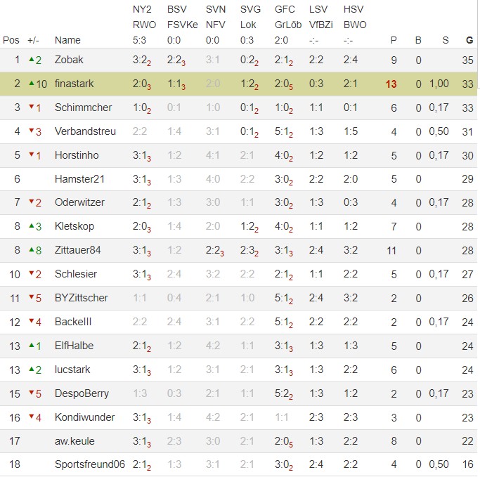 Lediglich ein Tipper ist noch säumig.