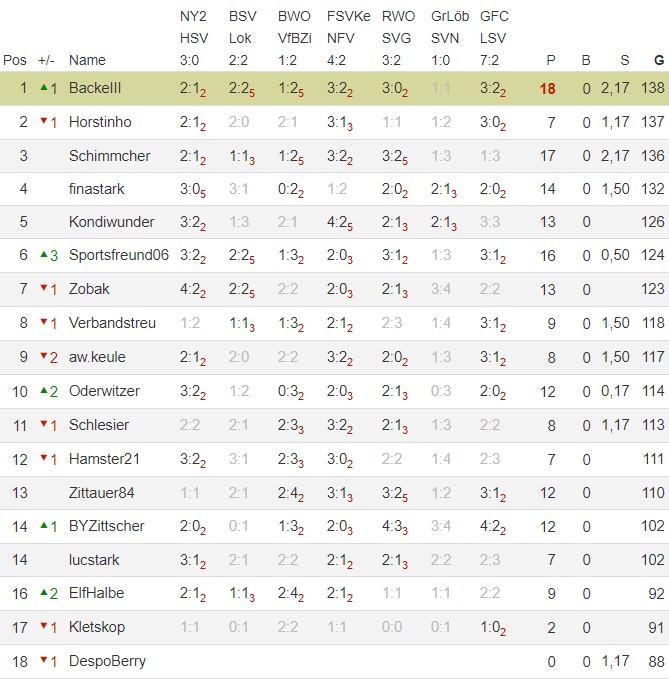 • Da habe ich ja mal richtig abgeschissen in der letzten Tipprunde....