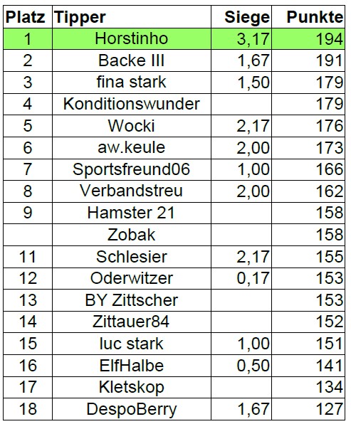 Herzlichen Glückwunsch dem neuen Tipp-Kreismeister Oberlausitz: Horstinhosowie allen weiteren Platzierten der Saison.