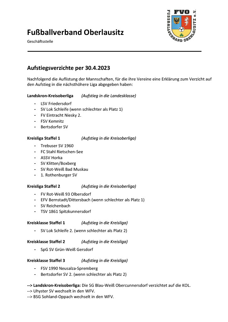 Ich kann diese Begründung nicht nachvollziehen....zumal man nach dem Aufstiegsverzicht von Neusalza II