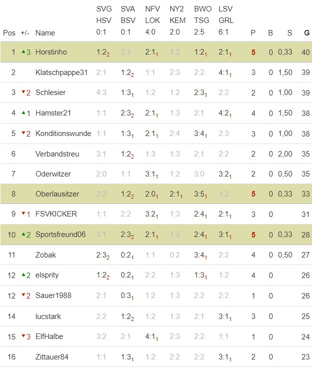 10.Tipprunde am SA/SO, 5./6. November 2022