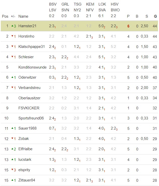 • Auswertung der Samstagsspiele des 11. Tippspieltages