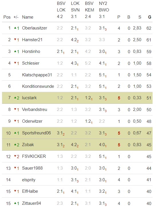 15.Tipprunde am SA/SO, 11./12. März 2023