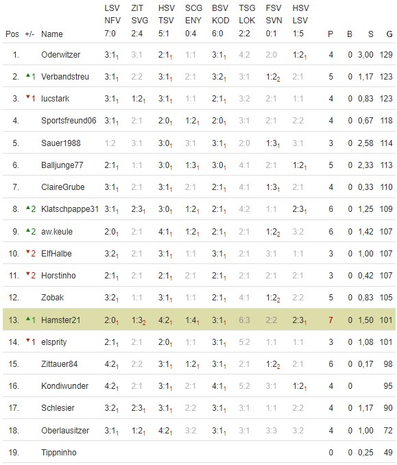Hatte mich schon geärgert, weil ich bei der Tippabgabe, Lawalde von 4:0 auf 3:0 geändert hatte.