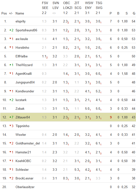 10.Tippspieltag im Kreisoberliga-Tippspiel 2025/26 am SA/SO, 8./9. November 2025