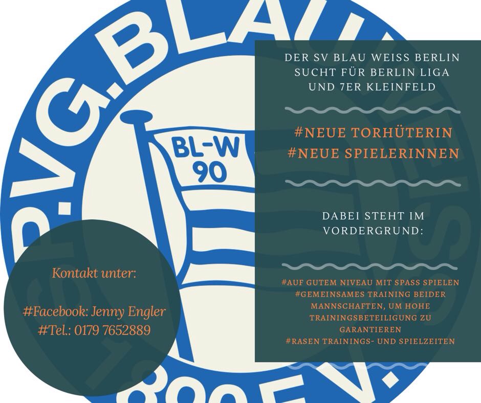 Wir die Frauen von Blau Weiss 90 spielen in der Verbandsliga und suchen dringend für die Neue Saison einen Torwart.