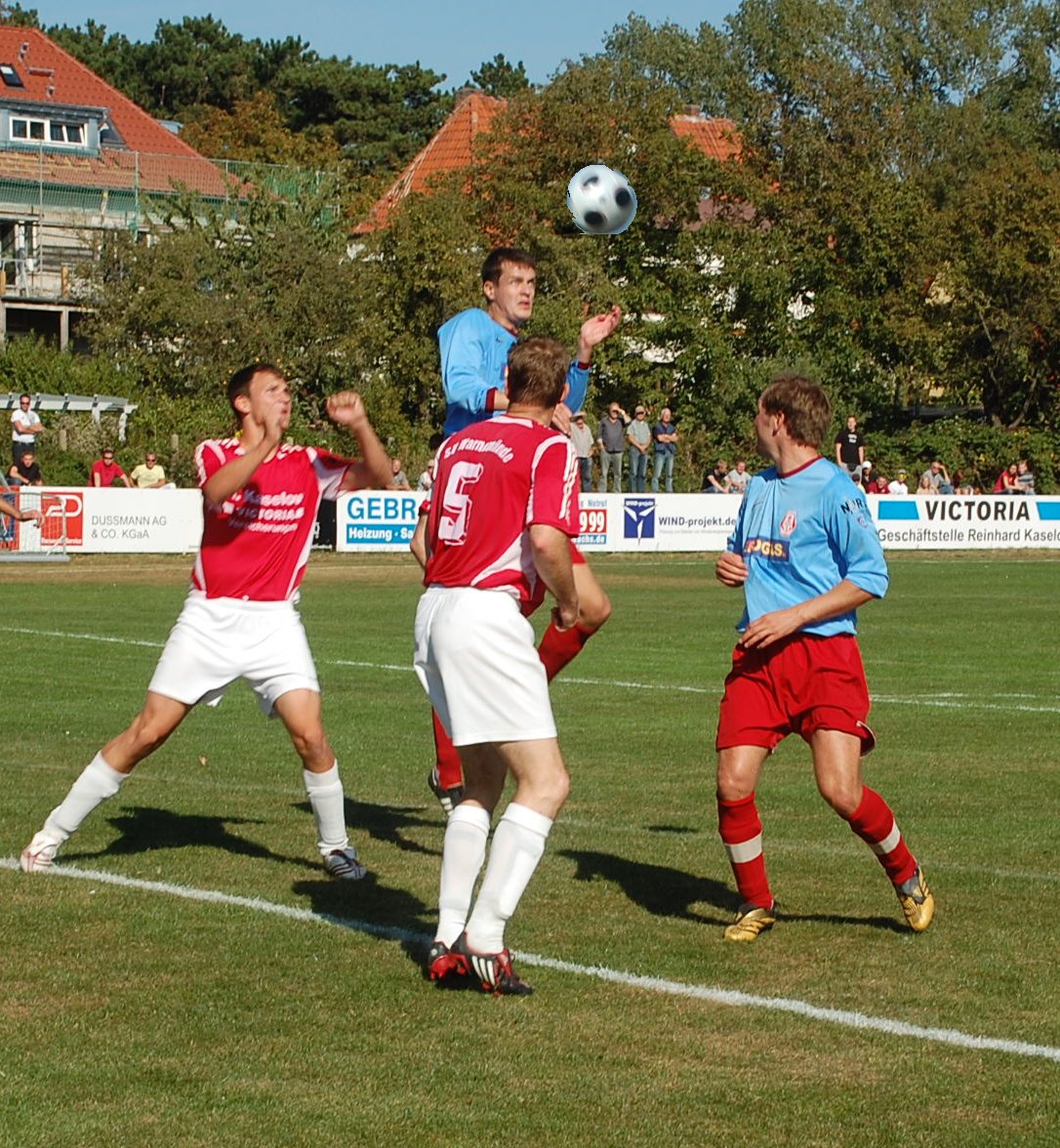 Das Ankerteam hatte aber an diesem Nachmittag lange zeit Ladehemmungen, denn in Hälfte eins konnte das Team von Trainer Timo Lange die kompakte Abwehr der Seebadstädter nicht knacken. Obwohl die Gäste praktisch ständig im angriff lagen, blieben durch die gut gestaffelte Warnemünder Hintermannschaft Chancen rar. Und wenn dann wie in der 26. Minute durch Marcel Heine, er schied in der 40. Minute nach einer Knieverletzung aus, oder in der 31. durch Fabian Bröcker doch noch Schüsse auf das Warnemünder Tor durchkamen, zeigte sich der gute Schlussmann Denny Fischer auf der Höhe. Eine richtige Durchschlagskraft entwickelte das Ankerteam in dieser ersten Halbzeit zwar nicht, trotzdem war es ein munterer erster Durchgang, bei dem beide Mannschaften aber jedes echte Risiko scheuten. Das Ankerteam versuchte sich zu oft im Ballhalten und die Elf von Trainer Heiko März deute ihre Gefährlichkeit mit zwei, drei Kontern an. Aber bis auf die Chance in der 27. Minute, als Carlos Viana De Oliveira die Kugel lang am Ankertor vorbeischob ließ die Wismarer Hintermannschaft nicht zu. Das Fazit der ersten Halbzeit: Die Gastgeber hatten große Respekt vor dem Spitzenreiter, die Ankerelf fand in der ersten Hälfte nicht zur gewünschten Durchschlagskraft.