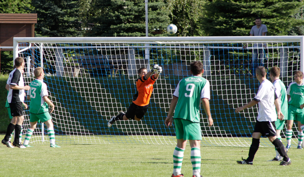 Zum Anfang war der SV Hertha ein hochgeschätztes Team für den 1. FC Rodewisch. Der Gastgeber freute sich schon riesig auf das Spiel. Dieses wurde kurz nach Anpfiff für den SV Hertha schon gefährlich. Gleich zweimal Pfosten und in der 8. Minute die Führung durch Harand ließ die nach den vielen Lauftraining müden Herthanern nicht aus der Ruhe bringen. In der 10. Minute schaffte Benjamin Stern den Ausgleich zum 1:1. Danach war es sehr ruhig. Viele Torversuche beider Mannschaften, aber nix gelang. In der 44. Minute bekam der Keeper vom SV Hertha eine gelbe Karte wegen Handspiels außerhalb der 16m-Linie. Den daraus resultierenden Freistoß verwandelte Stolpmann zum 2:1. Halbzeit.