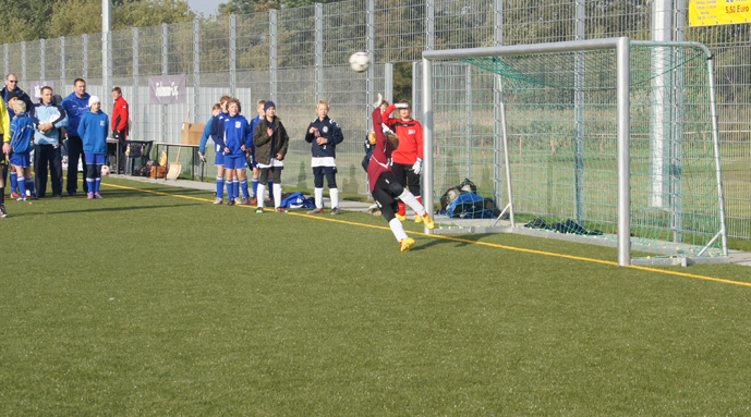 Ein sehr gut geschossener Ball der nicht leicht zu halten war. Die Jungs lagen sich schon in den Armen aber dann ertönte ein Pfiff.