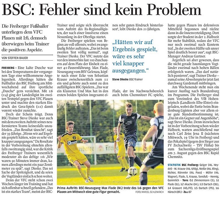 Harcus Hennig und Christopher Illing wechseln von Germania Chemnitz aus der Landesklasse zum BSC Freiberg in die Sachsenliga. Hennig soll dabei wohl Rico Thomas ersetzen. Das wird ihm wohl in der ersten Saison nicht gelingen. 2016/17 eine Liga tiefer hat er da eher seine Chancen.