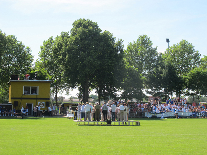 3. Endspielzuschauer: 1.300 (Doppelfinale, vorher Warnau II gg Rossau II 2-1 n.V.) - Endspielfunktionäre im Schatten des Balls