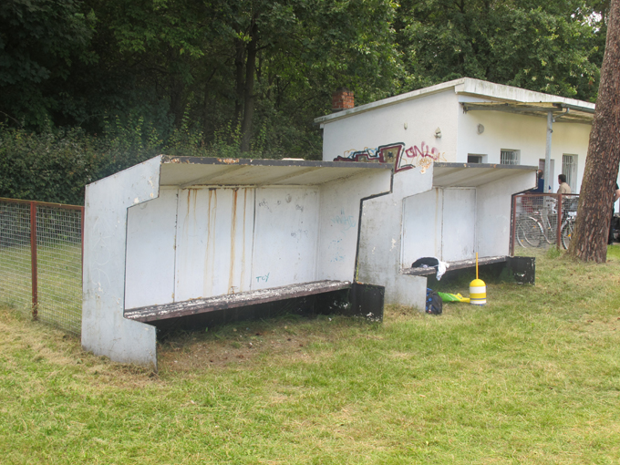 Schöner, unspektakulärer Sportplatz, wohl aber mit schlechten Sanitärbedingungen. Die Grünauer und die Schiedsrichter kleiden sich am Buntzelberg um und werden dann hier her und wieder zurück chauffiert ...