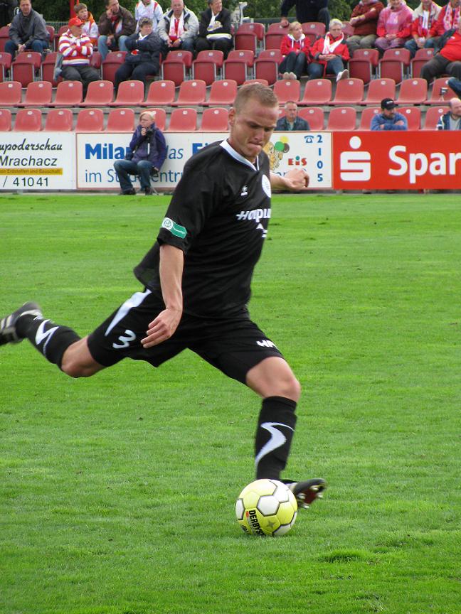 Schiedsrichter Sebastian Schmickartz (Berlin) pfiff die Partie pünktlich an. Chemie hatte Anstoß. Und Chemie legte auch los wie die Feuerwehr. So holte man gleich in der zweiten Spielminute die erste Ecke heraus. Die von Nico Kanitz in Kooperation mit Pavel David kurz ausgeführte Ecke konnte Meuselwitz-Schlussmann Oliver Dix ohne Probleme parieren. Zwei Minuten später war es wieder der agile Pavel David, der sich durchtankte und von der Strafraumgrenze abzog, aber letztendlich wieder in Oliver Dix seinen Meister fand. Nach fünf Minuten konnte man sich dann auch mal eine ZFC-Chance notieren: Der ZFC erkämpfte sich eine Ecke und der von Karsten Oswald getretene Eckball köpfte Sturmlatte Martin Bocek an Freund, Feind und Tor vorbei. So verlief das Spiel die ersten 35 Minuten weiter: Jeweils immer auf zwei HFC-Chancen (14. Minute: Nico Kanitz schießt aus 8m, Patrick Brendel klärt in höchster Not; 24. Minute: Freistoß Nico Kanitz aus ca. 20m, Martin Bocek klärt; 30. Minute: Kanitz-Solo aus dem eigenen Halbfeld bis zur ZFC-Strafraumgrenze, knapp am Außenpfosten vorbei; 31. Minute: Pavel David scheitert erneut an Oliver Dix) folgte eine ZFC-Chance (26. Minute: Sebastian Gasch zieht aus ca. 20m ab, knapp vorbei; 32. Minute: Freistoß Ales Pikl, HFC-Schlussmann Darko Horvat kann den Ball halten). Dann war es endlich soweit: Thomas Neubert passte butterweich auf Pavel David, der ZFC-Keeper Oliver Dix in seiner Reaktionsträgheit vernascht und schiebt zum – zumindest aus Gästesicht – viel umjubelten 0:1 ein (36.). Die letzten beiden – sagen wir mal – kleinen Chancen gehörten dann den Thüringern: Jeweils Philipp Riese und Sebastian Gasch nahmen es mit dem Zielen nicht all zu genau und schossen den Ball entweder in Darko's Arme oder am Tor vorbei. Halbzeit!