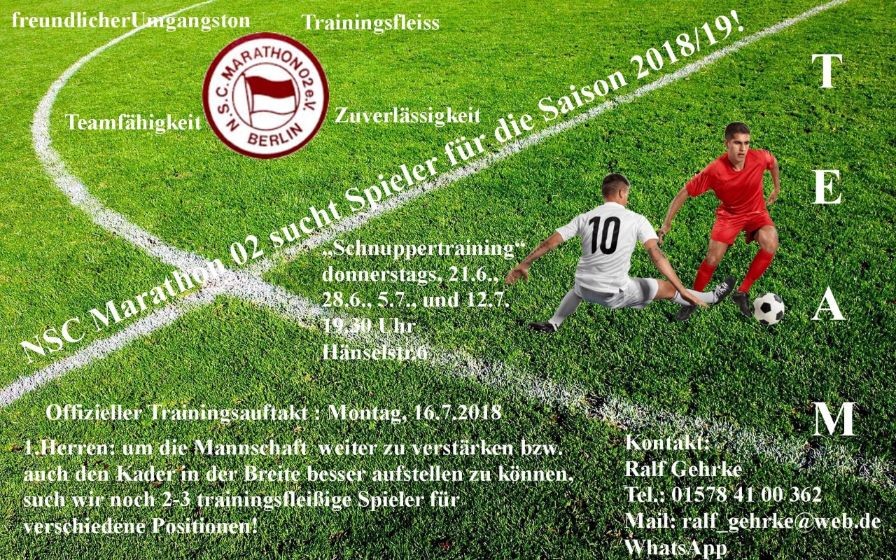 Der NSC Marathon 02 sucht Spieler für die Saison 2018/19.