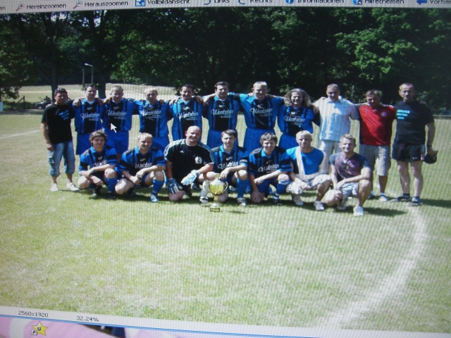 ...nachdem die jungs von der a24 im letzen spiel gegen sternbergII den nötigen punkt nicht einfahren konnten machten sie es diesmal besser und boten ihren fans eine überzeugende vorstellung mit netten tricks und schönen toren...der kader war diesmal recht dünn bestückt so das nur "geheimwaffe" ingolf brümmer auf der bank der blues zu finden war...vor dem spiel wurde noch einmal der oft kopierte spielerkreis gebildet und sich auf die bevorstehende meisterfeier eingeschworen...zum spiel...die hausherren zogen immer wieder ihr nettes kurzpassspiel auf und erspielten sich eine reihe guter chancen...dem gegner sollte gleich gezeigt werden das hier nix zu holen is...das 1-0 war nich ganz unumstritten...gut gespielter direktpass von m.müller auf d.schröder...der will den ball mit der hacke elegant runter pflücken und der heranpreschende abwehrspieler rennt voll mit dem kopf in den fuß des stürmers...alle diestelower warteten auf den pfiff des schiri`s(manche hätten sicher abgepfiffen)...der blieb aber aus...m.peters feuerte den ball per volley in den winkel und somit stand`s 1-0...